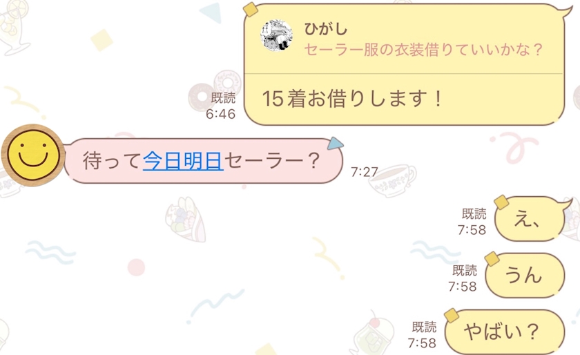 前日に衣装の準備をしてる段階で